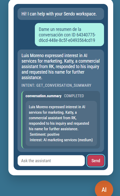 La IA de Sendo analiza cada conversación para ayudarte a tomar mejores decisiones.