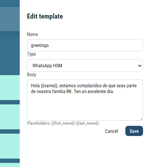 Plantillas de mensajes
