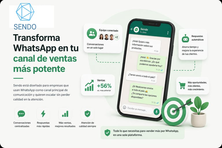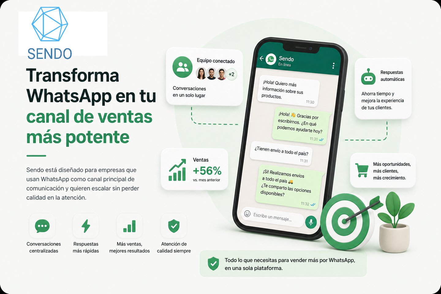 Sendo está diseñado para empresas que usan WhatsApp como canal principal de comunicación y quieren escalar sin perder calidad en la atención.